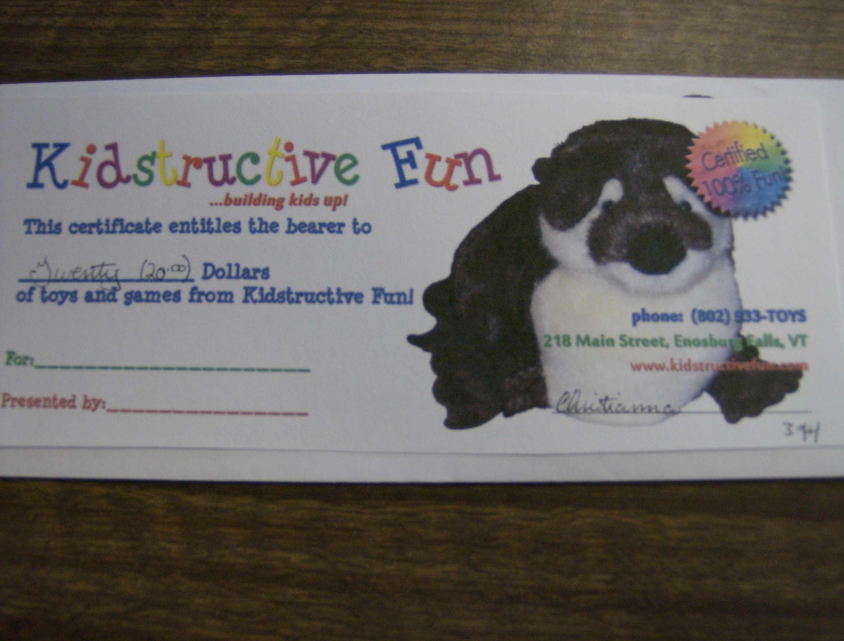 $20 Gift Certificate from Kidstructive Playthings